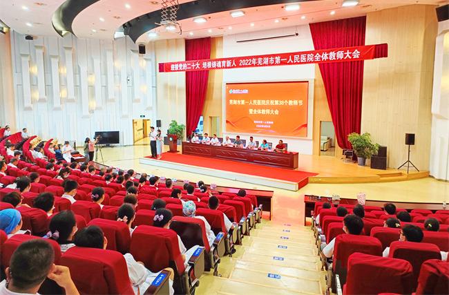 在第38个教师节来临之际,9月9日,研究院执行院长潘成岭受邀出席了芜湖市第一人民医院庆祝第38个教师节表彰大会,芜湖市第一人民医院领导、皖医临床学院领导、市一院临床学院教研室人员、全体授课老师及学生代表参加会议。